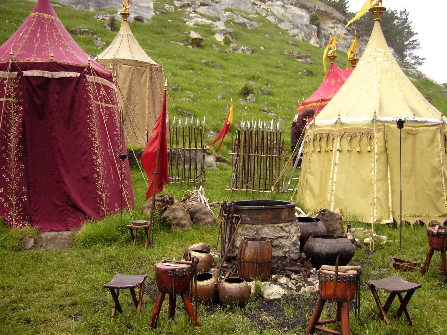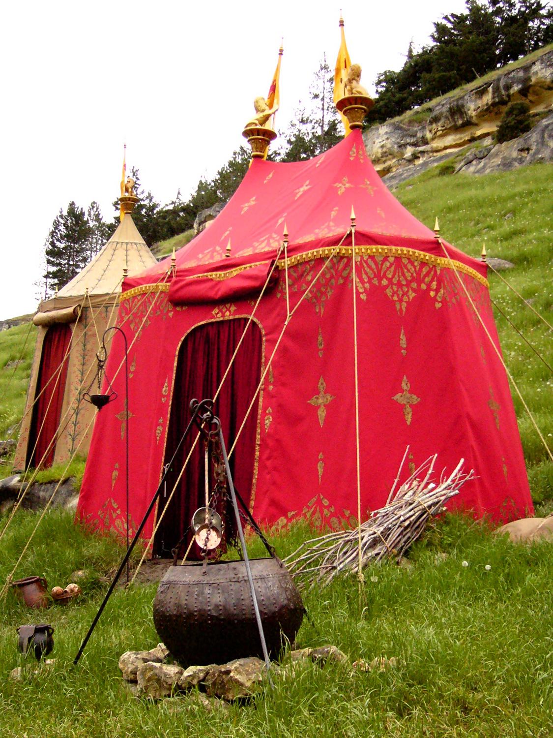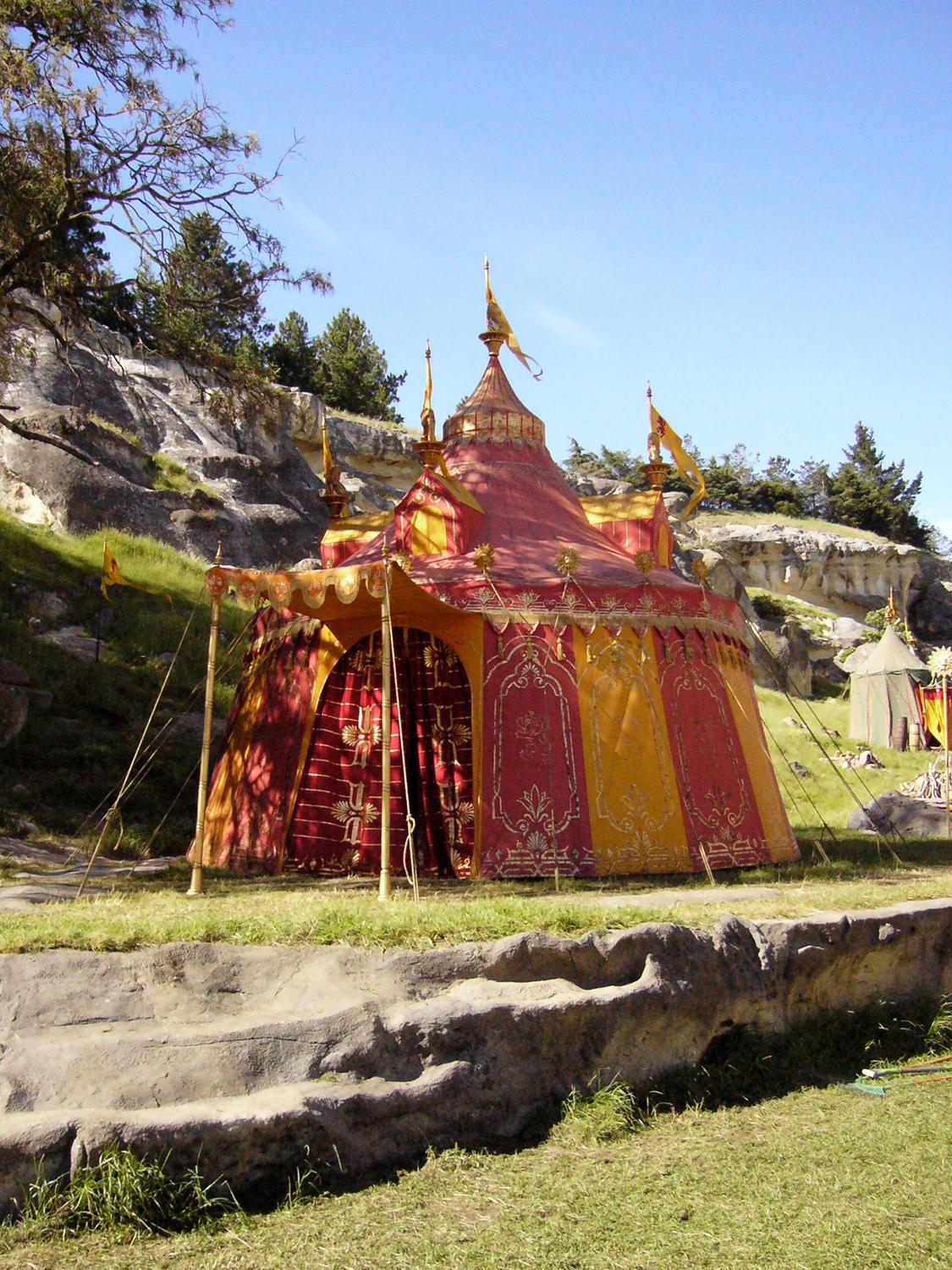 To achieve the desired look of luxury and elegance, Set Designers specified that the tents be constructed from silk with hemp rope—materials that were historically accurate but not typically used for structural tenting.