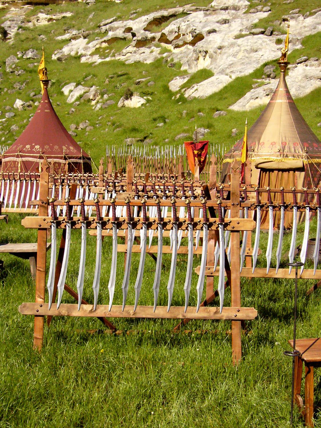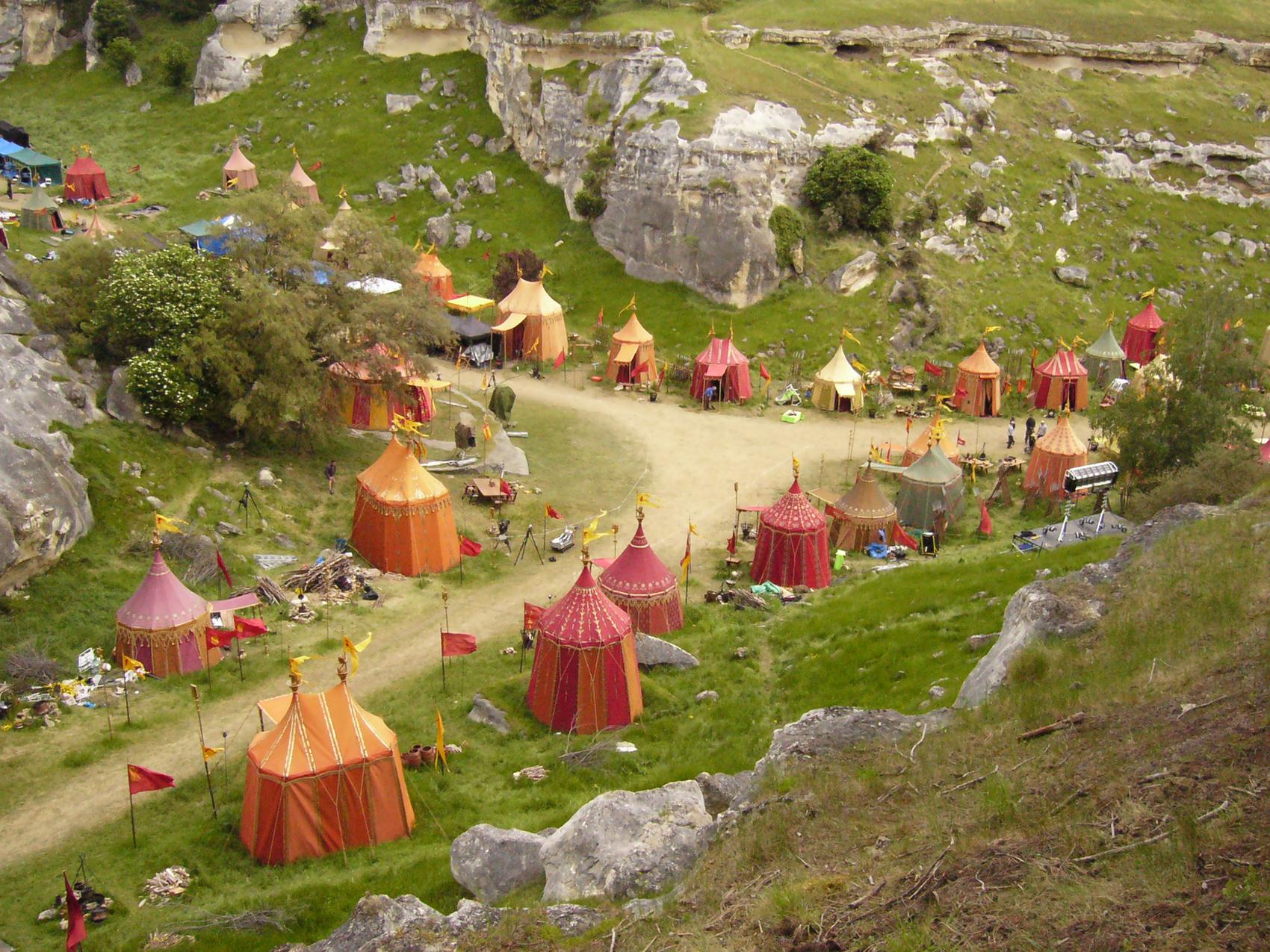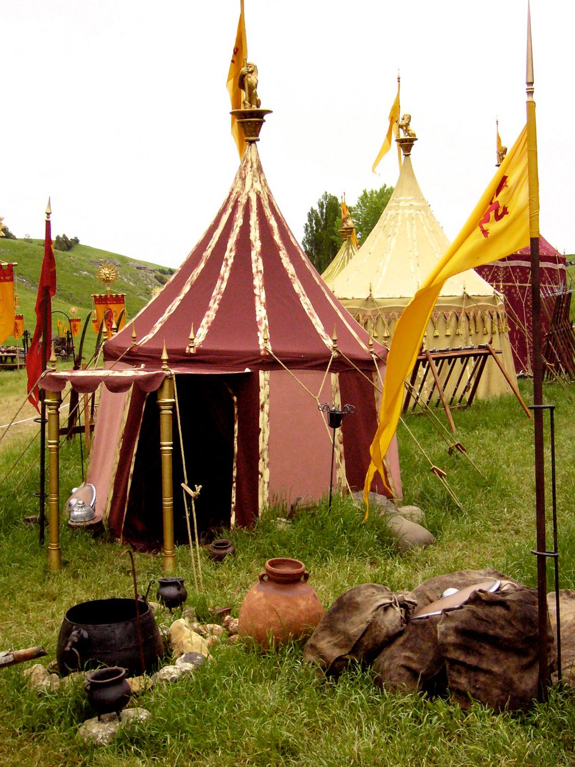 To achieve the desired look of luxury and elegance, Set Designers specified that the tents be constructed from silk with hemp rope—materials that were historically accurate but not typically used for structural tenting.