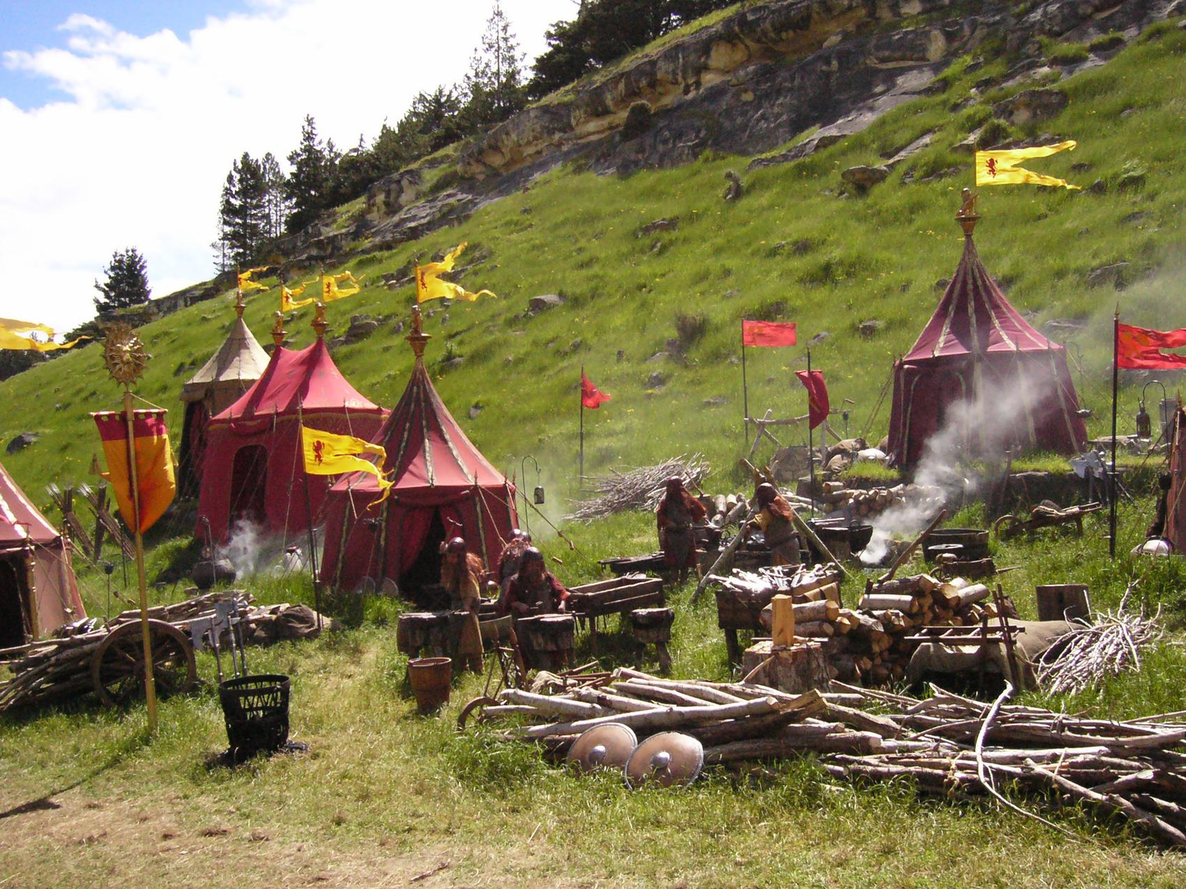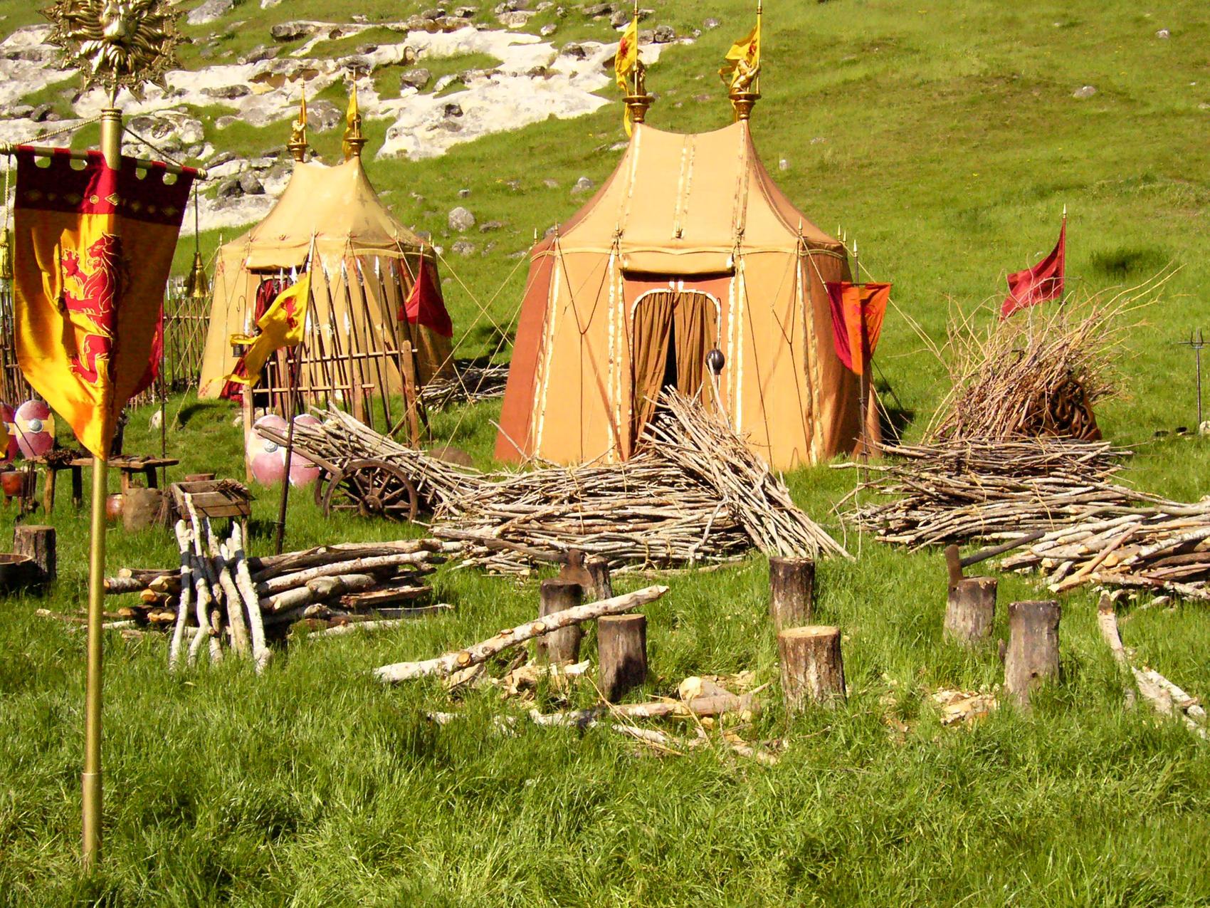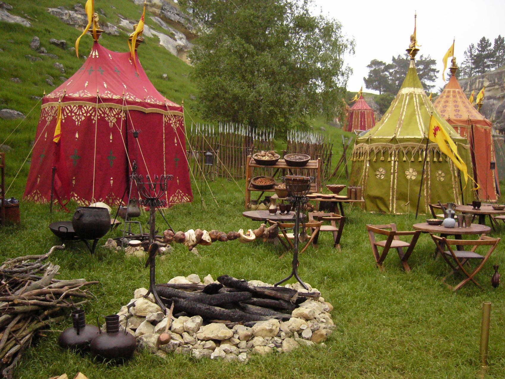The tents were central to several cinematic scenes, making authenticity essential. Designs were developed collaboratively with Set Designers, using visual and textual references from medieval encyclopaedias and other historical sources. Each tent needed to appear unique yet cohesive within the village environment.